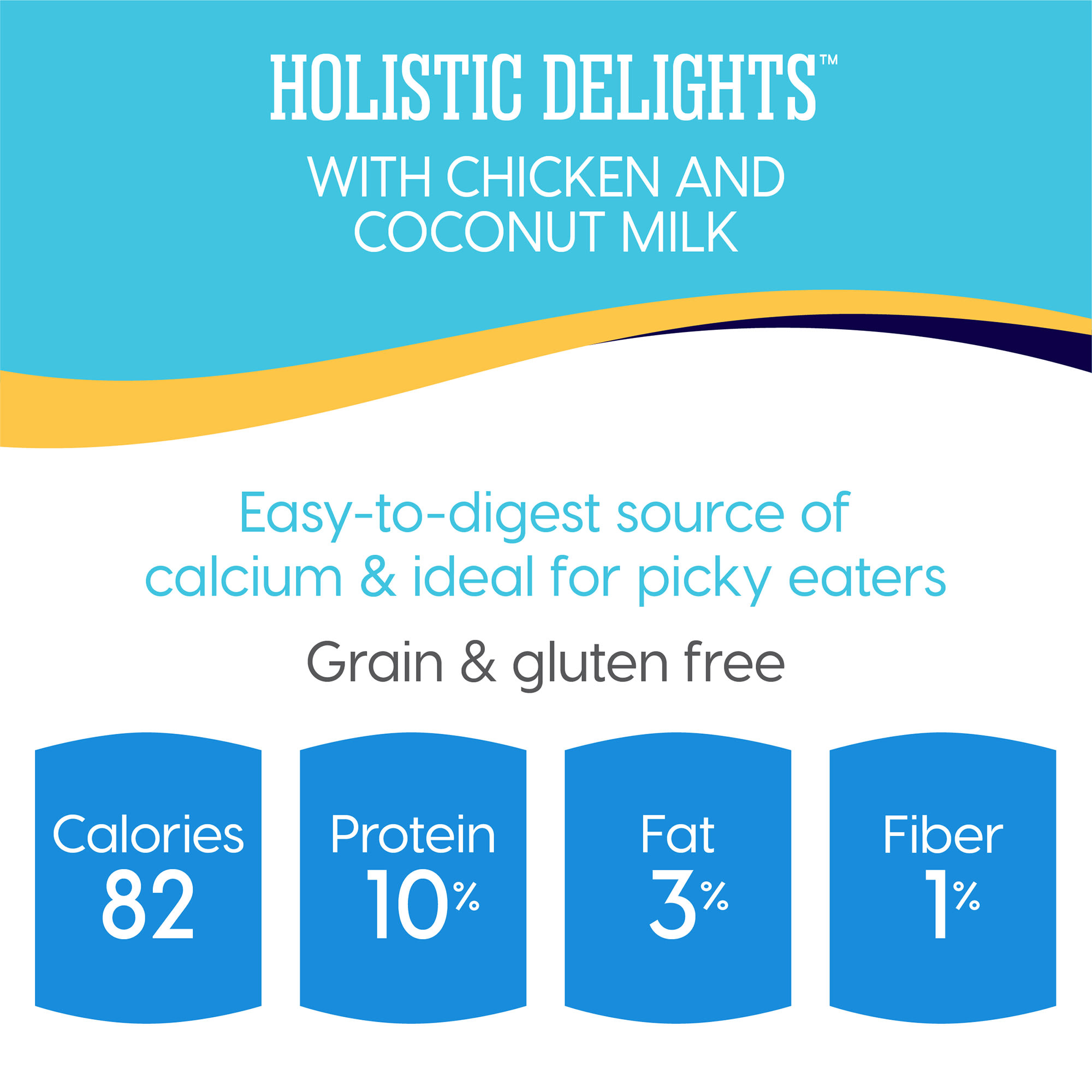 . Solid Gold was founded in 1974 by an animal loving woman and Great Dane. It is a science-backed formula of natural chicken. Make mealtime even more delightful with the Solid Gold Holistic Delights Creamy Bisque with Chicken Coconut Milk Grain-Free Cat Food Pouches.